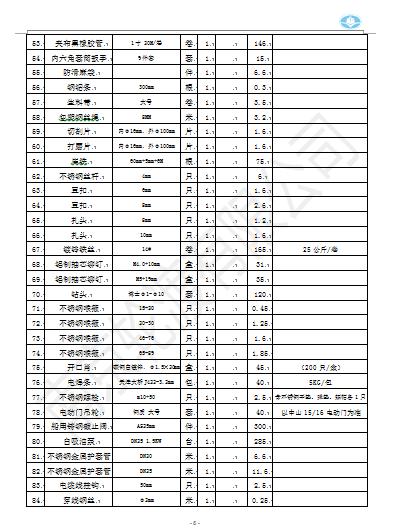 6. 供应商报价时如对清单中规格型号有疑问,请及时与南京轮渡有限公司联系人联系,具体以轮渡公司仓库实际材料为准。