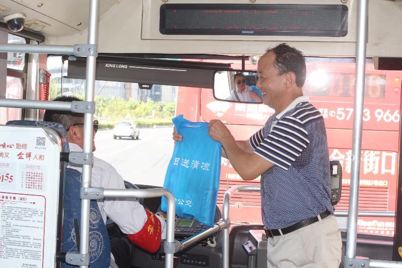三伏天是一年中最热的时节,7月17日是今年的入伏第一天,室外温度高达35℃以上,六合公司领导班子分两组,分别在经理袁方和党总支副书记李明锐的带领下,走向运营、服务一线,在炎炎夏日中,给坚守在公交一线的驾驶员送去了矿泉水、饮料等防暑降温物品。
