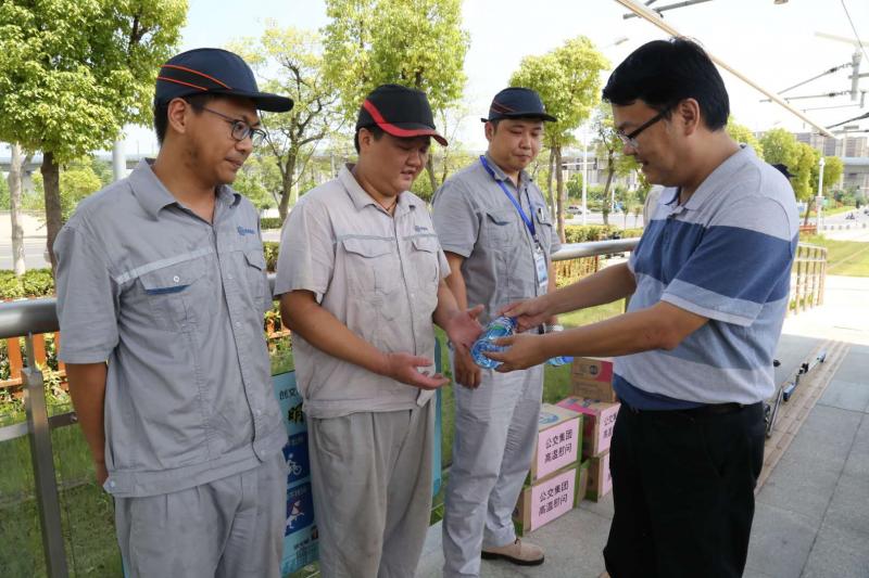 7月20日,在热气蒸腾的中午,公交集团领导班子来到公交人奋战的多个一线岗位,为他们送上清凉饮料和关爱,与他们一起同战高温。在这个夏天,努力为南京市民带来一路清凉。
